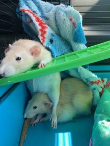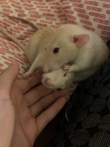 Some pet owners choose to rename a pet when they adopt. I have kept some rat names that I thought were funny, and changed others. Lulu and Dora both had a lovely, distinctive strawberry blonde color, and they were extremely jumpy and fast. One was a little fatter than the other, but otherwise they were all but identical and we generally couldn’t tell them apart. My sister and I did the reasonable thing–we gave up on individual names. We started referring to both rats collectively as The Shrews. It’s definitely a funny conversation every time someone asks for their names.As rats do (in a whole year), the Shrews are getting older. They have slowed down and come to relax the constant running for a little bit of cuddling. We also moved and the Shrews did well through this journey. Our parents are huge fans. My dad was referring to them as mice for a while, and now loves to come into their room to offer them nuts, seaweed, and other snacks. They are some seriously lovable little shrews.