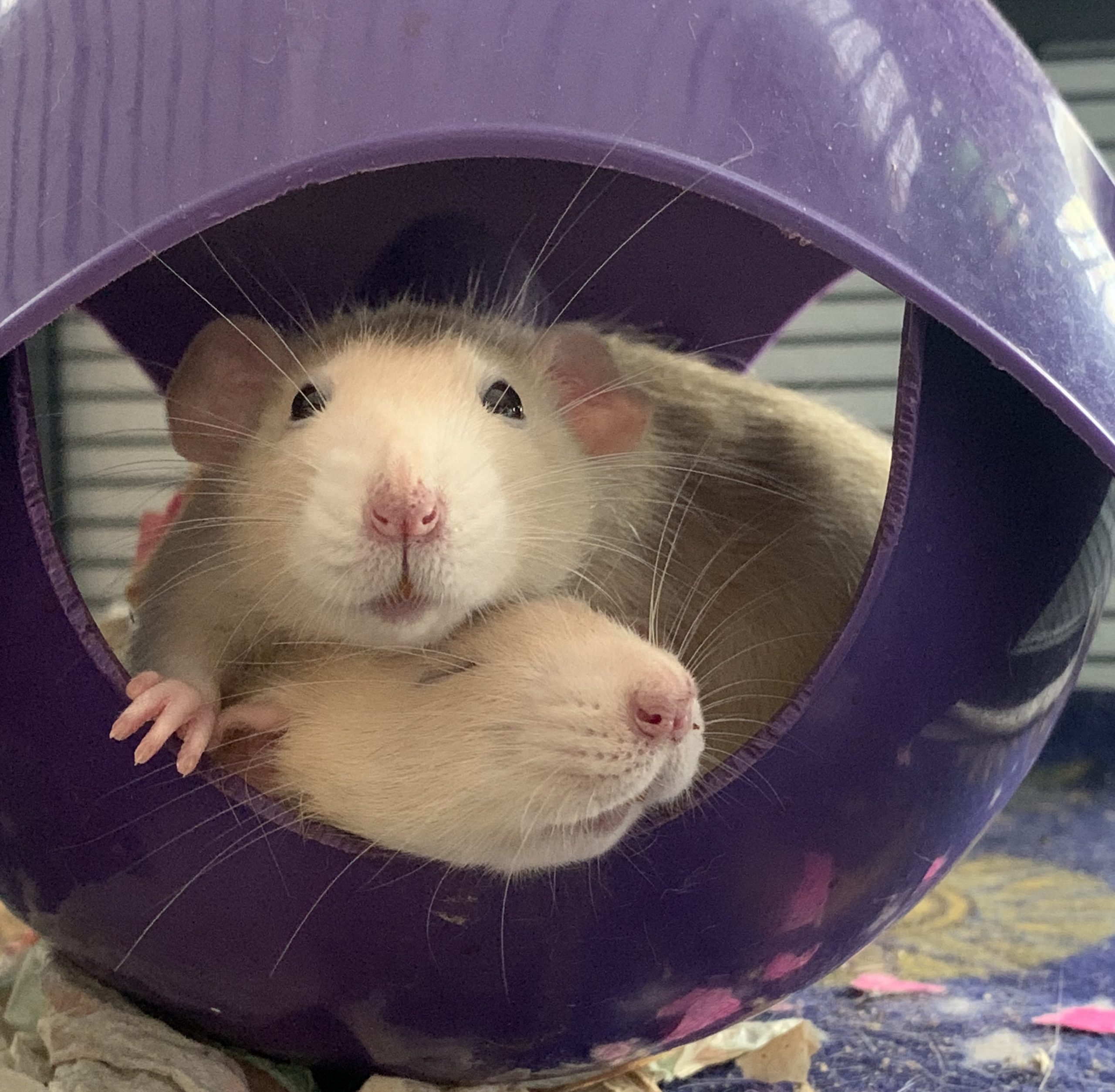Rattie Ratz mission is to find loving forever homes for all the rats who come our way. Many of our volunteers (including myself!) enjoy our own personal ratties just like the folks who adopt from us. Since we are in the business of rescue, we often come across our future pets at unexpected times and in unexpected ways.Last January, I interviewed Skye for a KRLM story about their lovely rats, Lulu and Dora. This was pre-COVID, so I got the opportunity to meet the ratties in person and greatly enjoyed their adorable personalities (and a few kisses).