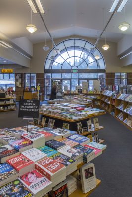 Third Place Books, opened in 1998, is located in Lake Forest Park—a town just north of Seattle. It’s situated within Third Place Commons, a formerly deserted shopping mall. The downstairs level houses a few small shops and a branch of the county library. The Commons’ large upper floor is an open-plan and comprises not only the bookstore with its 200,000 new, used, and bargain books, but also several eateries (Honey Bear Bakery and its cinnamon rolls are legendary), a meeting room, a stage, and a vast space with tables and chairs and a giant chess board. Third Place is where friends meet for coffee or lunch and writers write (*raises hand*). It is also the place for bridge clubs, tutoring sessions, knitters, book groups, and soccer coaches. I’ve eavesdropped—because after all, that’s what writers do—on job interviews, sales pitches, and blind dates. The Commons is the very essence of the Third Place.