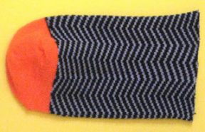 4. To make arms, cut heel from remainder of sock. Cut cuff in half. Turn each half inside-out. Stitch along long edge.