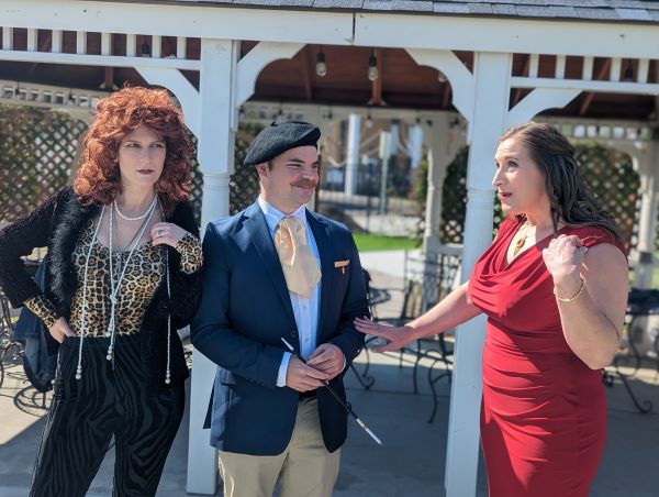 As the director of this year’s Murder Mystery, I am thrilled to participate in this community-driven event. Last year, as part of the cast, and this year, as director. Past Murder Mysteries have been written and directed by Louella Moreland, a dedicated supporter of our cause who relocated to Texas last May. In her absence, Moreland agreed to write this year’s mystery, and I agreed to continue this legacy along with Kim Spicer, Judy Waite, and the director of the Children’s Storybook Garden and Museum, Kaitlin Jost Sheets. Working with these ladies has been a joy, and their dedication to our two wonderful non-profit organizations is unwavering. Your support at this event is crucial to our continued success. Murder Mystery dinners are a unique experience where the Kings Players provide the story and clues, and you, our esteemed guests, get to play detective. As you enjoy a catered meal prepared by Carmen Bettencourt, who will be working with the West Hills College Culinary Arts students, and a signature cocktail, you can question the suspects, view the crime scene, and vote on who you believe committed the murder. This interactive element makes the Murder Mystery popular among adults of all ages, providing an evening of laughter, mingling, and live theater while supporting two fantastic organizations.Step into the intriguing world of the lovely community of Stonybrook, a town brimming with success, money, gossip, mystery, and murder. Our story unfolds in the home of Dr. and Mrs. Basswood, played by the talented Zeke Andre and the lovely Rebecca Jenson. The couple is hosting the unveiling of artist Cosmos Hemlock’s new painting, played by Steven Walker. All the party guests are regulars at social gatherings in Stonybrook, and there is never a dull moment when these social elites gather.