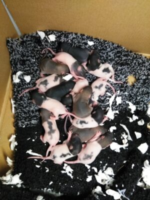 In June of 2023, a woman reached out to Rattie Ratz Rescue when she discovered that her female rat was pregnant. She had accidentally gotten a male and female from the pet store. Once the babies arrived, she asked Rattie Ratz to help find homes for them. In the midst of this communication with a Rattie Ratz volunteer, the woman happened to discover an abandoned litter of young babies that had been left behind in an apartment. It was believed the owner must have taken the mother rat with them, but her small and vulnerable babies were sadly left behind to face a heartbreaking end.
