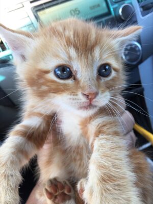 Then I get a call from someone who got my number from a friend. She was leaving work in Orange Cove when she spotted a box on the sidewalk. Inside were three tiny kittens. She was, as anyone should be, outraged that someone would be so callous as to leave these defenseless creatures at the mercy of God knows what! I flat out said I didn’t want to, but I would. My son-in-law volunteered to care for them so that was a tremendous relief!