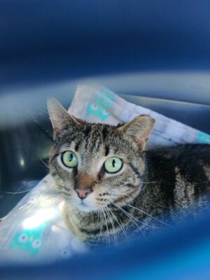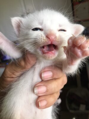One young cat had a not-so-happy ending. I picked up a severely malnourished female cat at a packing house near my home. A lady who worked there witnessed the poor thing nearly get taken out by a forklift so she contacted me. I picked her up immediately. However, despite my best efforts, the poor thing passed away three days later. Her starved little body just couldn’t recover.