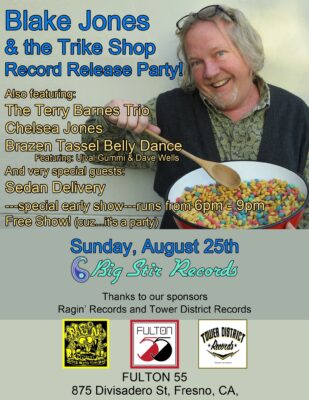 Blake Jones & the Trike Shop is celebrating the release of their new record “and still…”. The record’s lead-off singles were released in May and have been getting lots of attention–being played on broadcast and internet radio stations from Dublin to Syracuse, Chicago to Los Angeles, several outlets in the UK, and here in the Fresno area on Fresno’s KFSR 90.7 FM and KFCF 88.1 FM.
