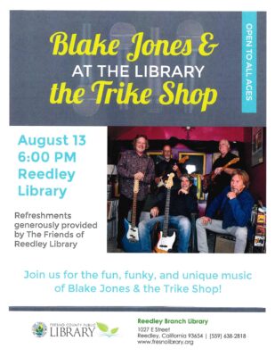 They will also be performing at the Reedley Library on Tuesday, August 13 at 6 p.m.