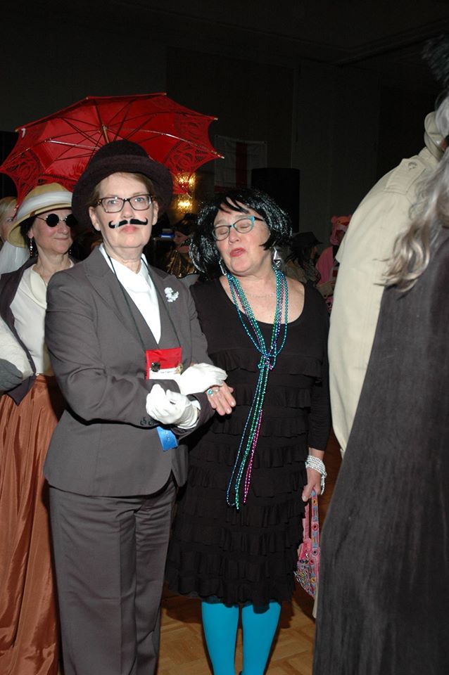 Another year, author Cheryl Hollon went as Hercule Poirot, and I made a stab at Phryne Fisher.