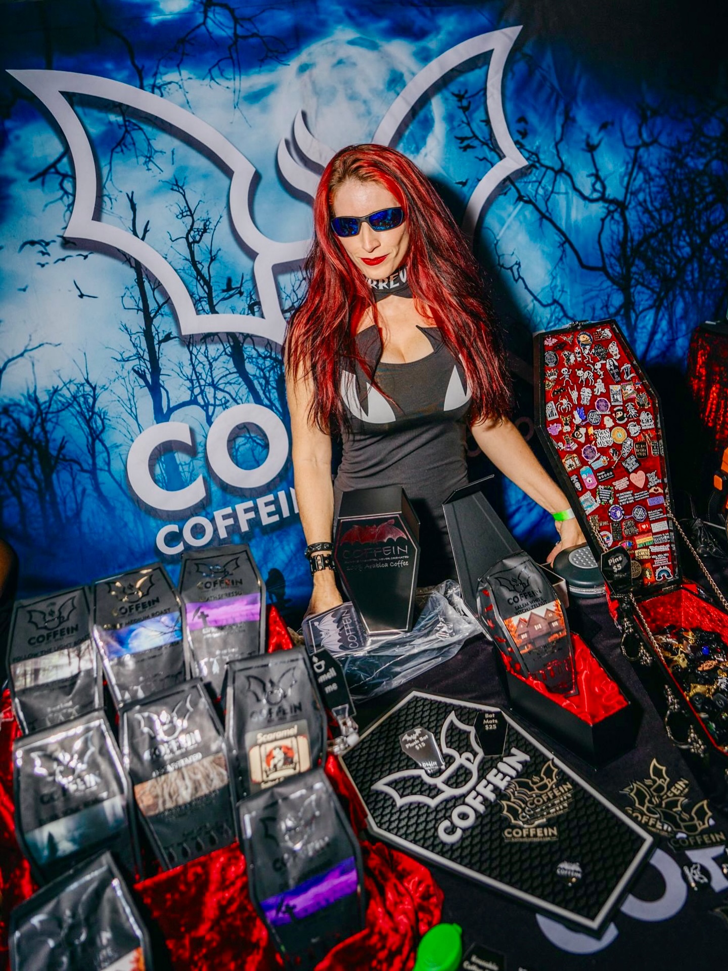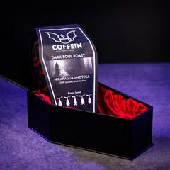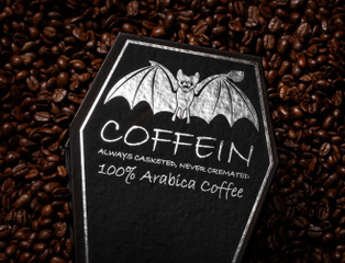 Kat: Coffein’s mission is to be the coffee of choice for goths, punks, metalheads, horror fans, and bat lovers. With coffee packaged in coffin-shaped bags and red, satin-lined coffin boxes, it is not for everyone. I grew up in the goth/punk scene (which revolves around music and fashion); my product definitely reflects that.